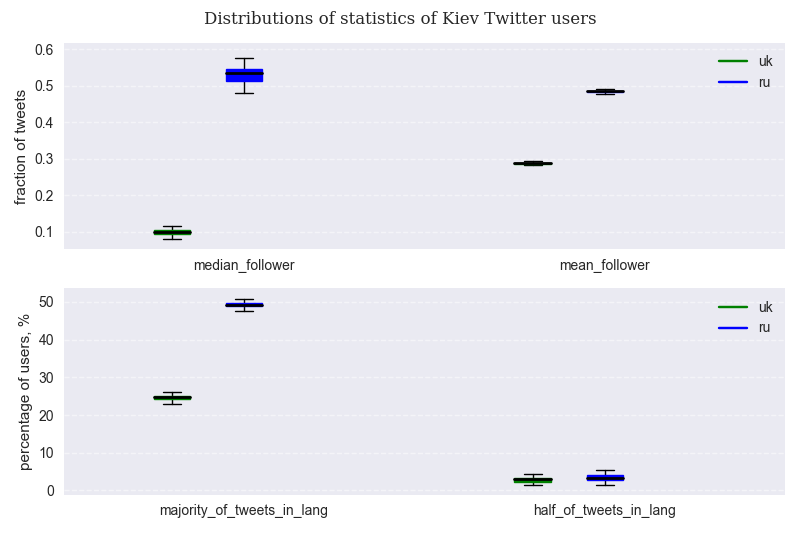 The box plots distribution are much more balanced than in the case of Barcelona accounts, immediately suggesting that Ukrainian is in a stronger position.